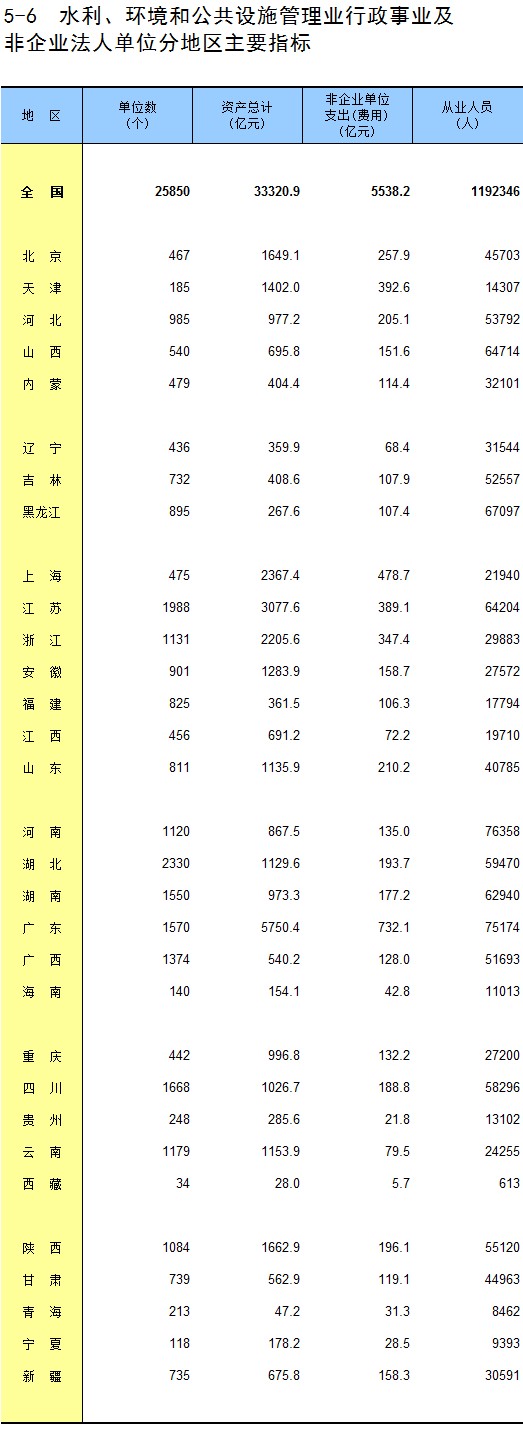 5-6 水利、环境和公共设施管理业行政事业及非企业法人单位分地区主要指标