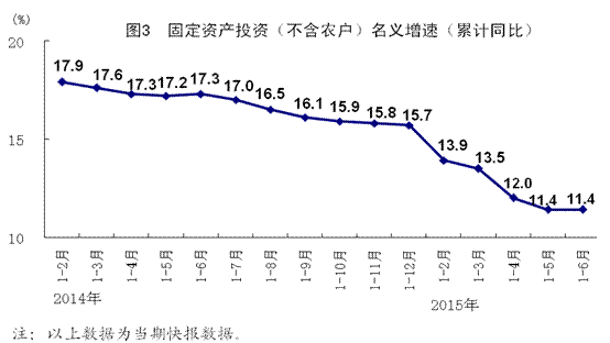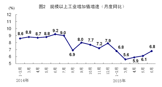 (2)根据季节调整模型自动修正结果,对近一年来各期国内生产总值、规模以上工业增加值、固定资产投资(不含农户)、社会消费品零售总额环比增速进行修订。修订结果及2015年二季度GDP环比数据、2015年6月份其他指标环比数据如下: