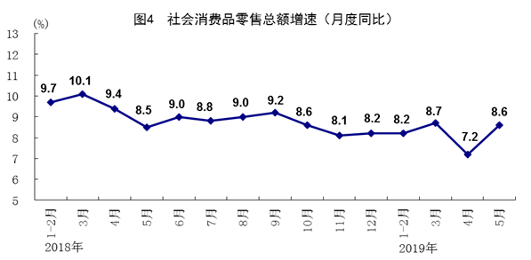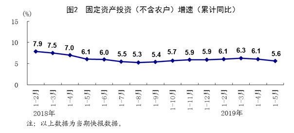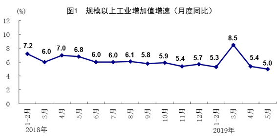 总的来看,5月份国民经济运行总体平稳、稳中有进,继续运行在合理区间。当前,外部环境不稳定不确定因素有所增加,国内发展不平衡不充分问题仍然突出,经济持续健康发展的基础还需巩固。下阶段,要坚持以习近平新时代中国特色社会主义思想为指导,坚持稳中求进工作总基调,统筹稳增长、促改革、调结构、惠民生、防风险、保稳定,狠抓稳就业、稳金融、稳外贸、稳外资、稳投资、稳预期政策落实,坚持以供给侧结构性改革为主线,培育壮大国内市场,持续打好三大攻坚战,着力推动高质量发展,深化改革开放,强化创新驱动,加快产业升级,促进经济平稳健康可持续发展。