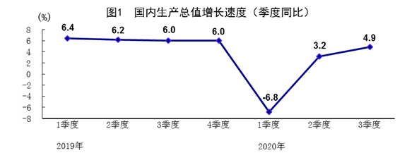 前三季度,面对新冠肺炎疫情巨大冲击和复杂严峻的国内外环境,在以习近平同志为核心的党中央坚强领导下,各地区各部门科学统筹疫情防控和经济社会发展,有力有效推动生产生活秩序恢复,前三季度经济增速由负转正,供需关系逐步改善,市场活力动力增强,就业民生较好保障,国民经济延续稳定恢复态势,社会大局保持稳定。