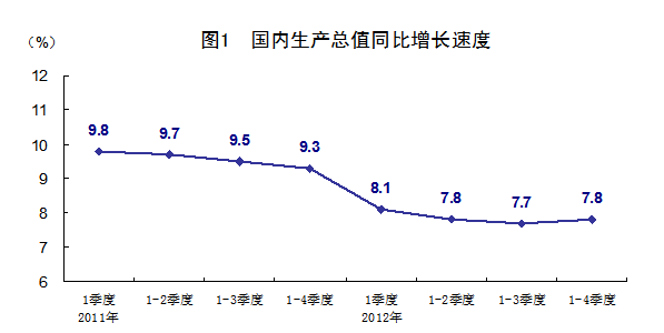 2011年及2012年各季度 GDP环比增速分别为2.2%、2.4%、2.3%、1.9%、1.5%、2.0%、2.1%、2.0%。