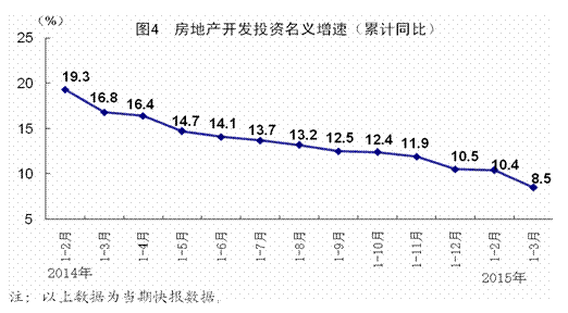 一季度,全国房地产开发投资16651亿元,同比名义增长8.5%(扣除价格因素实际增长9.5%),其中住宅投资增长5.9%。房屋新开工面积23724万平方米,同比下降18.4%,其中住宅新开工面积下降20.9%。全国商品房销售面积18254万平方米,同比下降9.2%,其中住宅销售面积下降9.8%。全国商品房销售额12023亿元,同比下降9.3%,其中住宅销售额下降9.1%。房地产开发企业土地购置面积4051万平方米,同比下降32.4%。3月末,全国商品房待售面积64998万平方米,同比增长24.6%。一季度,房地产开发企业到位资金27892亿元,同比下降2.9%。