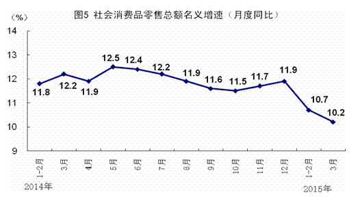 (2)根据季节调整模型自动修正结果,对近一年来各期国内生产总值、规模以上工业增加值、固定资产投资(不含农户)、社会消费品零售总额环比增速进行修订。修订结果及2015年一季度GDP环比数据、2015年3月份其他指标环比数据如下: