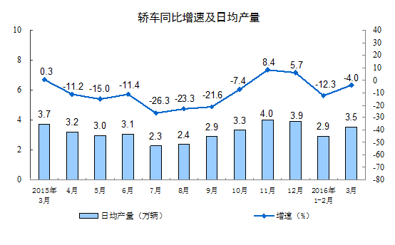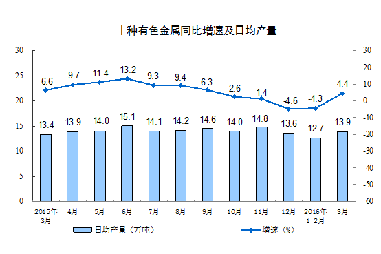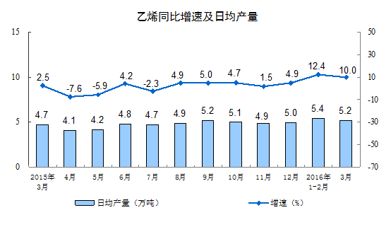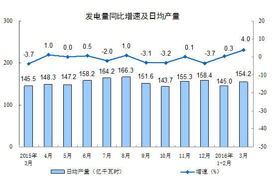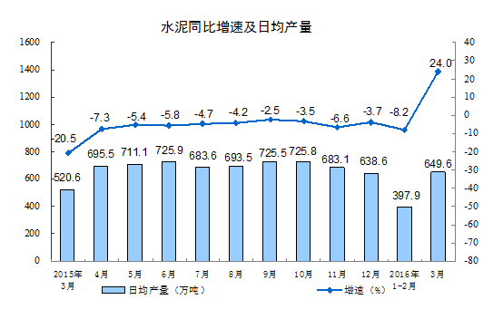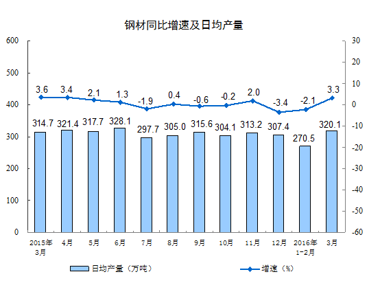 分产品看,3月份,588种产品中有412种产品同比增长。其中,钢材9923万吨,同比增长3.3%;水泥20139万吨,增长 24.0%;十种有色金属431万吨,增长4.4%;乙烯162万吨,增长10.0%;汽车255.4万辆,增长8.9%;轿车109.2万辆,下降4.0%;发电量4779亿千瓦时,增长4.0%;原油加工量4491万吨,下降0.2%。