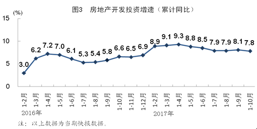 “三去一降一补”取得新进展。去产能、去库存成效突出。钢铁、煤炭去产能年度目标已超额完成,1.4亿吨“地条钢”产能出清。10月末,商品房待售面积同比下降13.3%,降幅比上月末扩大1.1个百分点。去杠杆、降成本稳步推进。9月末,规模以上工业企业资产负债率为55.7%,比上年同期下降0.6个百分点。前三季度,规模以上工业企业每百元主营业务收入中的成本为85.56元,比上年同期减少0.23元。短板领域得到加强。1-10月份,生态保护和环境治理业、公共设施管理业、农业投资同比分别增长24.1%、23.4%和17.6%,分别快于全部投资16.8、16.1和10.3个百分点。
