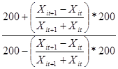 通常指标的增速或发展速度是以基期年份指标值作为基准进行比较的。在某一指标体系中,如果按照通常方法计算各指标的增速后进行加权平均,由于可能存在某些指标增速过高(或过低)的情况,这样就会造成指标增速之间不可比(即增速过高或过低的一些指标的作用掩盖了其他指标的作用),从而造成整个指标体系失真的现象。因此,必须采用对指标体系中各指标增速的范围进行控制的方法。一种较好的方法是将指标增速的基准值设定为该指标的两年平均值,这样计算出来的各指标增速的范围可以控制在[-200,200]的区间内。