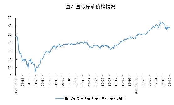 原油进口大幅增长,国际原油价格基本稳定。3月份,进口原油4966万吨,同比增长20.8%;一季度,进口原油13923万吨,同比增长9.5%。3月31日布伦特原油现货离岸价格为63.52美元/桶,比3月1日的64.56美元/桶下跌1.6%。