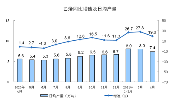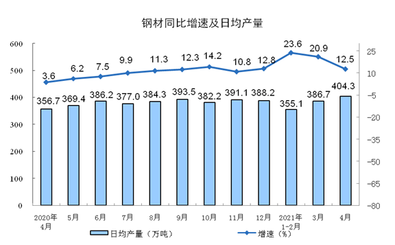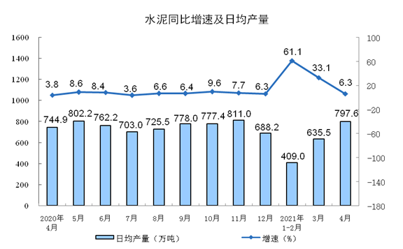 分产品看,4月份,612种产品中有445种产品同比增长。钢材12128万吨,同比增长12.5%;水泥23928万吨,增长6.3%;十种有色金属548万吨,增长11.6%;乙烯221万吨,增长19.0%;汽车227.3万辆,增长6.8%,其中,新能源汽车22.9万辆,增长175.9%;发电量6230亿千瓦时,增长11.0%;原油加工量5790万吨,增长7.5%。