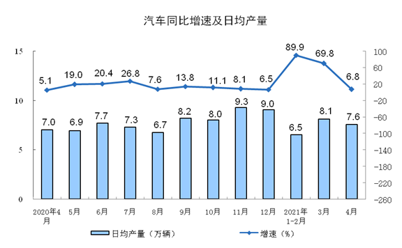 4月份,规模以上工业增加值同比实际增长9.8%(以下增加值增速均为扣除价格因素的实际增长率),比2019年同期增长14.1%,两年平均增长6.8%。从环比看,4月份,规模以上工业增加值比上月增长0.52%。1—4月份,规模以上工业增加值同比增长20.3%。