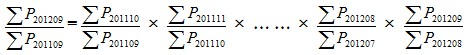 其中:P201201……P201209分别表示2012年1-9月份各月价格,P201109……P201112分别表示2011年9-12月份各月价格。