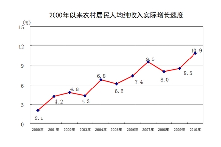 | | 农村居民人均纯收入(元) | … | … | 5919 | 10.9 | |