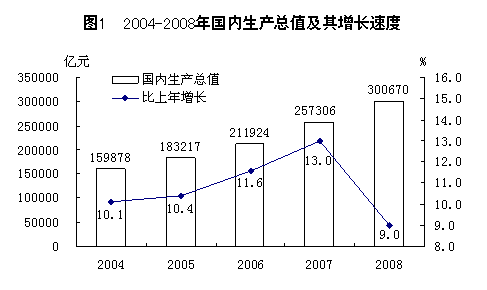 2008年,全国各族人民在党中央、国务院的领导下,以邓小平理论和“三个代表”重要思想为指导,深入贯彻落实科学发展观,万众一心,顽强拼搏,努力克服历史罕见的特大自然灾害和国际金融危机冲击的不利影响,国民经济保持较快发展,各项社会事业取得新的进步。