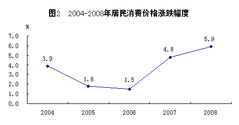 居民消费价格比上年上涨5.9%,其中食品价格上涨14.3%。固定资产投资价格上涨8.9%。工业品出厂价格上涨6.9%,其中生产资料价格上涨7.7%,生活资料价格上涨4.1%。原材料、燃料、动力购进价格上涨10.5%。农产品生产价格上涨14.1%。农业生产资料价格上涨20.3%。70个大中城市房屋销售价格上涨6.5%,其中新建住宅价格上涨7.1%,二手住宅价格上涨6.2%;房屋租赁价格上涨1.4%。