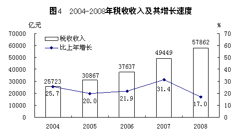 全年税收收入57862亿元(不包括关税、耕地占用税和契税),比上年增加8413亿元,增长17.0%。