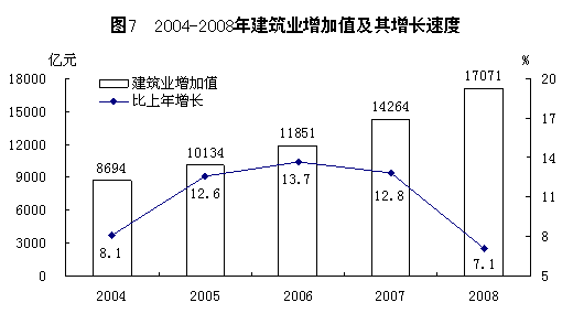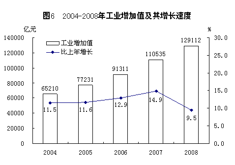 全年规模以上工业中,煤炭开采和洗选业增加值比上年增长19.1%,石油和天然气开采业增长6.1%,文教体育用品制造业增长18.2%,燃气生产和供应业增长26.8%,农副食品加工业增长15.0%,通用设备制造业增长16.9%,交通运输设备制造业增长15.2%,通信设备、计算机及其他电子设备制造业增长12.0%,电气机械及器材制造业增长18.1%,化学纤维制造业增长2.2%。6大高耗能行业比上年增长10.0%,其中,非金属矿物制品业增长16.9%,黑色金属冶炼及压延加工业增长8.2%,化学原料及化学制品制造业增长10.0%,有色金属冶炼及压延加工业增长12.3%,电力热力的生产和供应业增长8.6%,石油加工炼焦及核燃料加工业增长4.3%。高技术制造业增加值比上年增长14.0%。