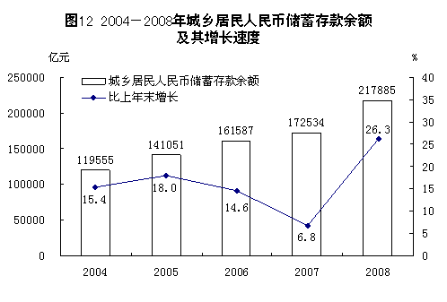 表14 2008年全部金融机构本外币存贷款及其增长速度