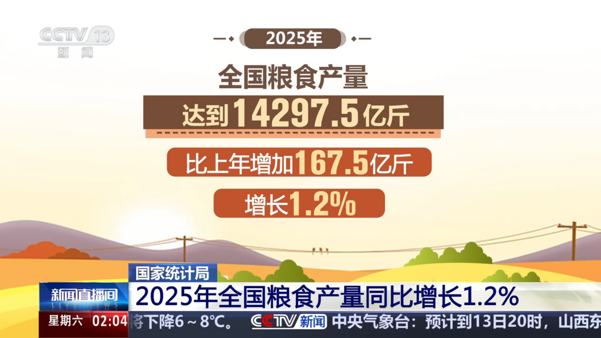 《新闻直播间》国家统计局 2025年全国粮食产量同比增长1.2%
