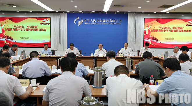 7月29-30日,国家统计局2019年“不忘初心、牢记使命”主题教育集中学习暨调研成果交流会在京召开。国家发展改革委副主任兼国家统计局局长、党组书记宁吉喆主持会议并作讲话。他强调,统计系统广大党员干部职工要按照“守初心、担使命,找差距、抓落实”的总要求,牢牢把握学习贯彻习近平新时代中国特色社会主义思想这条主线,全面落实习近平总书记关于主题教育“四个到位”重要要求,把学习教育、调查研究、检视问题、整改落实四项重点措施贯通起来,扎实推动主题教育不断往深里走、往实里走,以主题教育新成效推动统计改革新发展,为实现“两个一百年”奋斗目标、实现中华民族伟大复兴中国梦作出新的贡献。中央指导组组长姜大明同志出席会议并作指导讲话。局党组成员、副局长鲜祖德出席会议、交流发言并作总结,局党组成员、副局长李晓超、毛有丰、盛来运,总师曾玉平、邢志宏、文兼武出席会议并作交流发言。