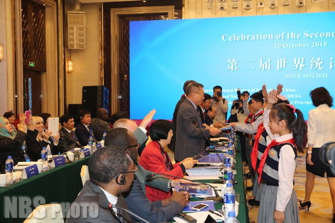 个国家和国际组织的近百名统计官员、专家、学者齐聚一堂,围绕“优化数据,改善生活”这一主题,展示政府统计成果,分享统计发展经验,倡导统计更好地服务经济社会发展和增进人民福祉。国务院副总理张高丽和联合国秘书长潘基文专门发来贺信,对“世界统计日”活动的举办表示热烈祝贺。联合国副秘书长吴红波、国家统计局副局长张为民、陕西省常务副省长姚引良参加活动并致辞。