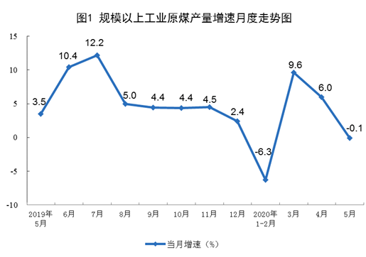 5月份,规模以上工业原煤生产由增转降,原油和电力生产加快,天然气生产保持较快增长。