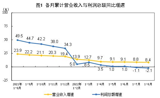 2022年1—8月份全国规模以上工业企业利润下降2.1%