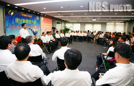 嘉宾们的到来,受到了国家统计局局长马建堂,副局长张为民、党组纪检组长罗兰、副局长徐一帆、谢鸿光、许宪春、李强以及总统计师鲜祖德、总工程师郑京平的热烈欢迎。