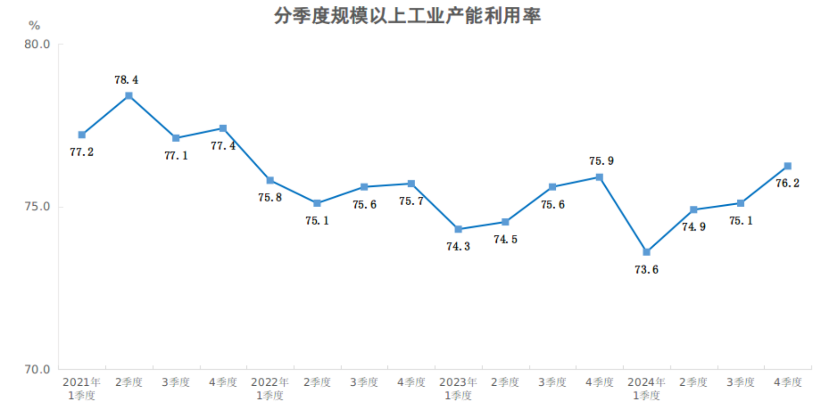 2024年四季度全国规模以上工业产能利用率为76.2%